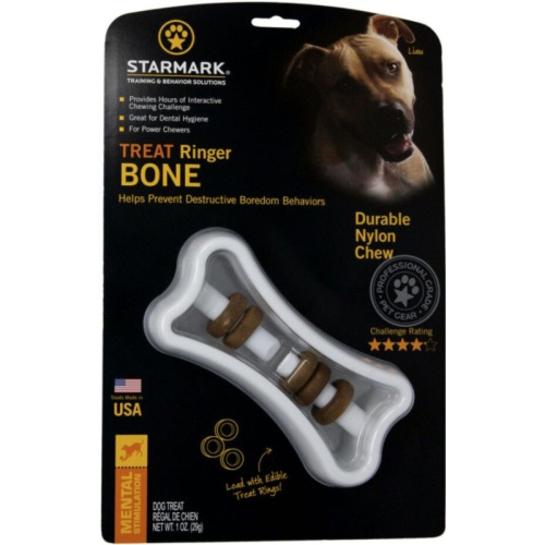 Starmark Mental Stimulation toys help keep pets mentally engaged in an activity they enjoy. They help foster natural hunting and foraging behaviors and help prevent destructive boredom behaviors. The Starmark Ringer Bone offers an extremely durable new chewing challenge!